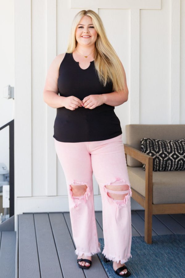Look your best in these eye-catching Babs jeans! Enjoy the flattering mid-to-high rise fit and straight cut, plus a cropped length for a trendy look. Heavily distressed pink stone wash adds a unique touch that will stand out. Feel confident and stylish with these standout jeans!